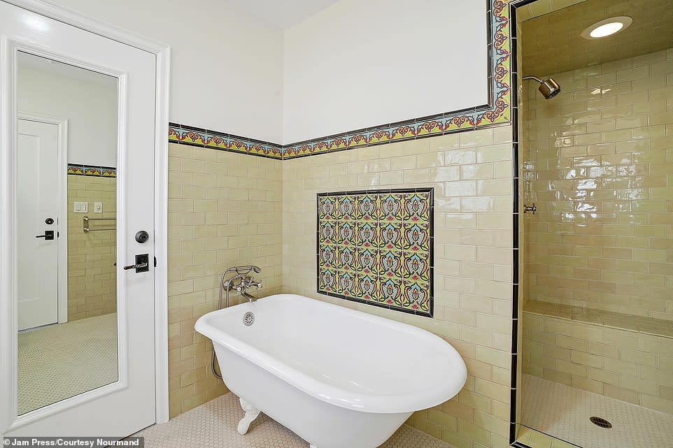 One of the home's bathrooms, complete with the original tiling and a deep freestanding tub.